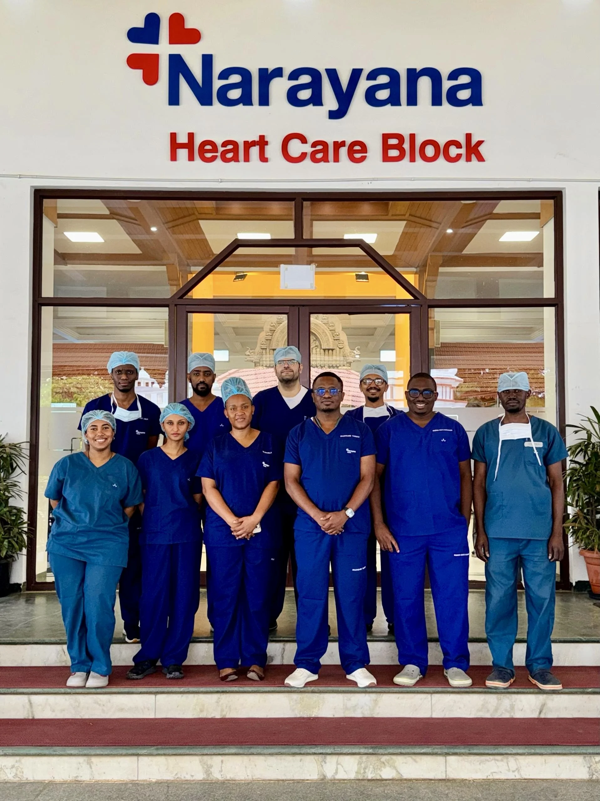 A team of multidisciplinary cardiac specialists from Tanzania, Ethiopia, and Uganda, including cardiologists, surgeons, anesthesiologists, perfusionists, and critical care experts is undergoing advanced training at the NH Institute of Cardiac Sciences in Bangalore, India. Sponsored by the Global Heart Foundation (GHF), this program offers hands-on experience with high-volume cardiac procedures, mentorship from leading experts, and a focus on team-based care for complex heart conditions. The goal is to equip these specialists with the skills and knowledge needed to improve cardiac care in their home countries.